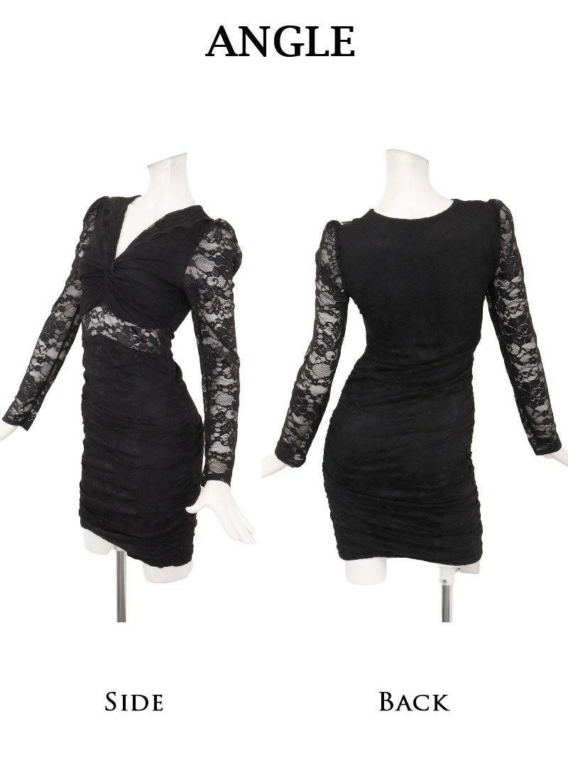 先行予約割¥4280→¥4065!※一部予約販売※ベルスリーブ袖レースカシュクールタイトミニドレス ギャザー寄せウエスト細見せキャバドレス 前スリット入り りせり 着用 キャバドレス【RyuyuChick】(S/M/L/XL(2L)/XXL(3L))(ブラック/ホワイト)