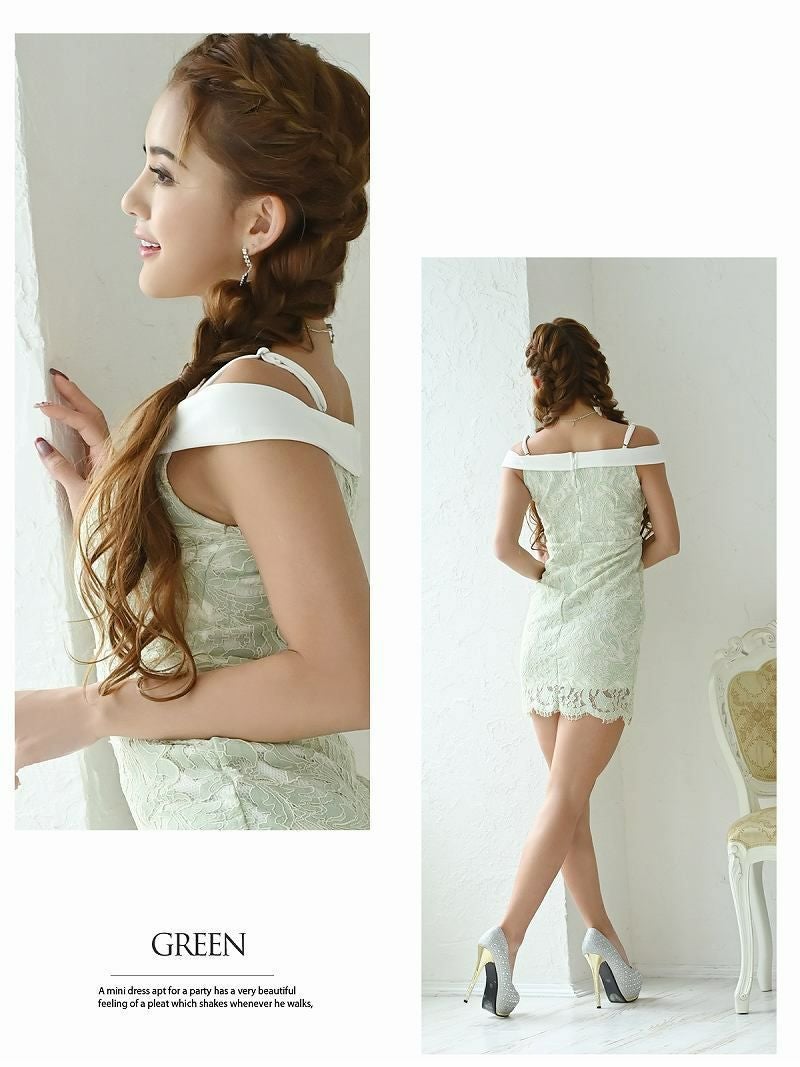 5. 総レース×オフショルバストカットキャバドレス【RyuyuChick】(S/M/L)(ブルー/グリーン/ブラック)
