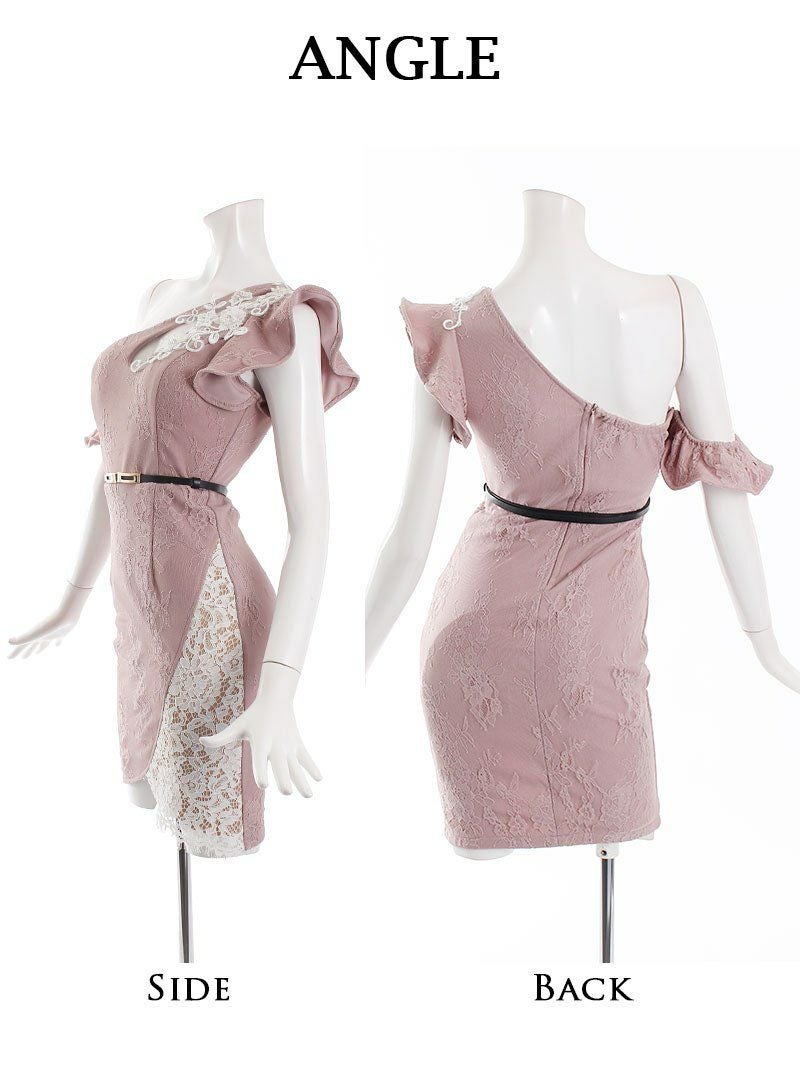 上品で高級感溢れる色っぽドレス 総レースワンショルダー谷間魅せキャバドレス 加賀美早紀 着用ミニドレス【Belsia】(S/M/L)(ピンク/ターコイズ/ワイン) ptpl