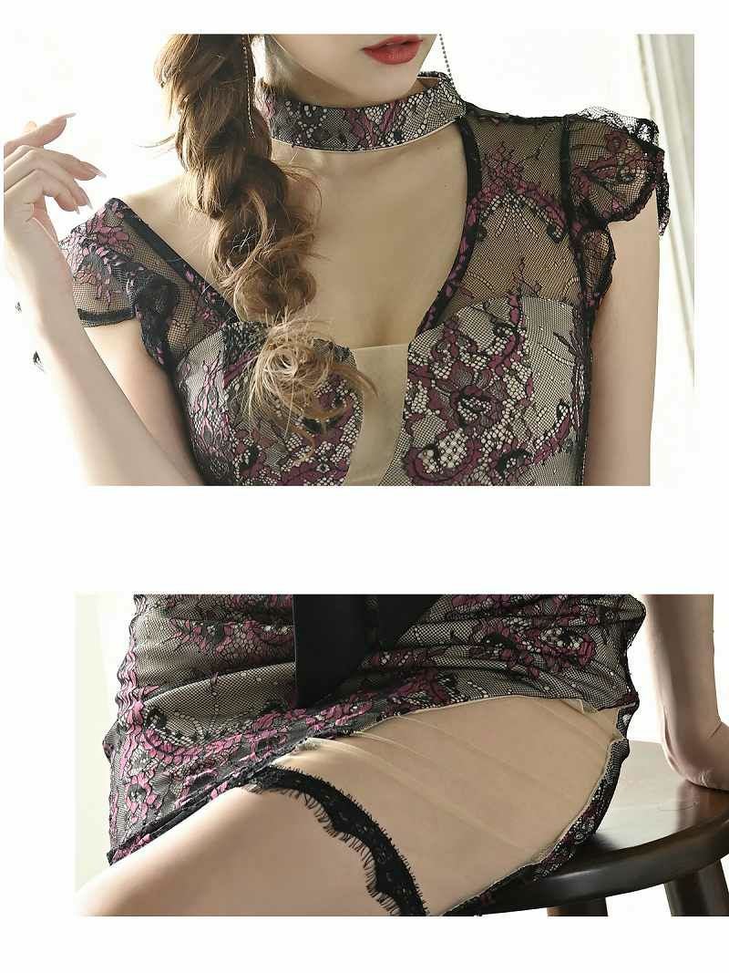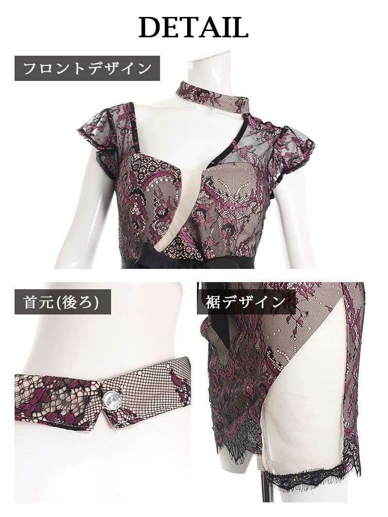 ペイズリー柄風総レースフレンチスリーブキャバドレス 加賀美早紀 着用ミニドレス【Belsia】