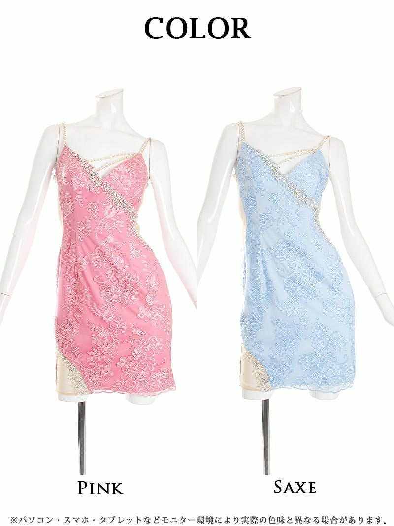 5. 【Angel R/エンジェルアール】花柄レースシアービジューキャバドレス(S/M)(サックス/ピンク)