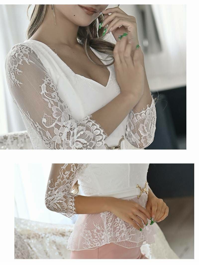 白色のレース袖が愛らしく、でもどこか上品なキャバクラドレスになっています。