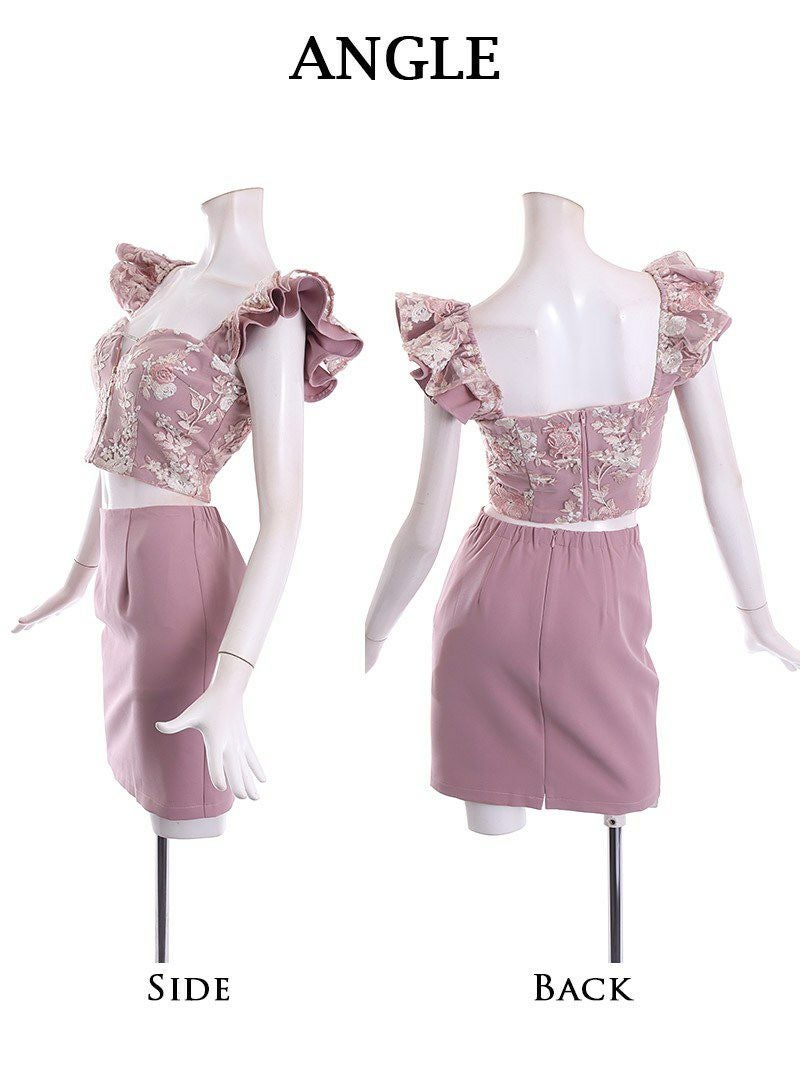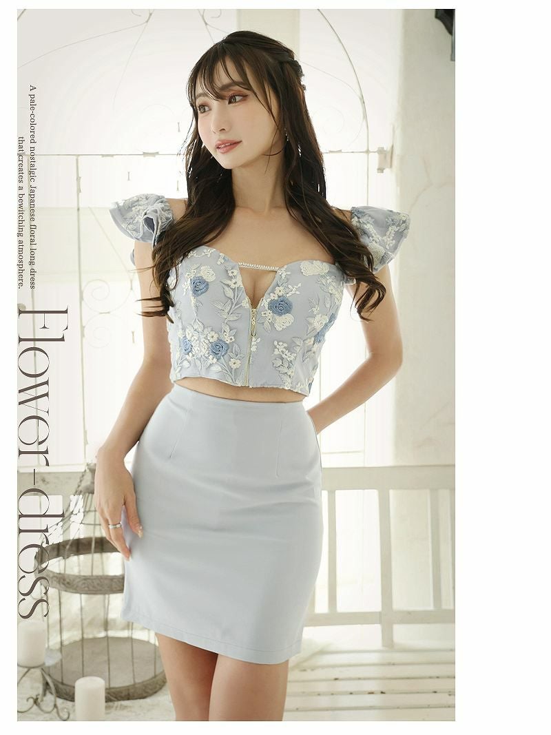 4. ラグジュアリー花柄刺繍オフショルタイトセットアップキャバドレス【Belsia】(S/M/L)(ブルー/ピンク)