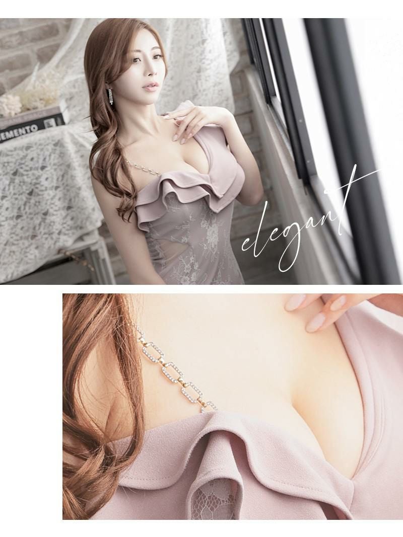 ワンショルダーフラワーレースタイトミニキャバドレス【Ryuyu】