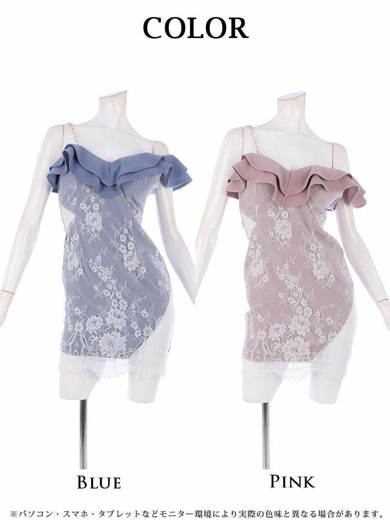 4. ワンショルダーフラワーレースタイトミニキャバドレス【Ryuyu】(S/M/L)(ピンク/ブルー) ptpl