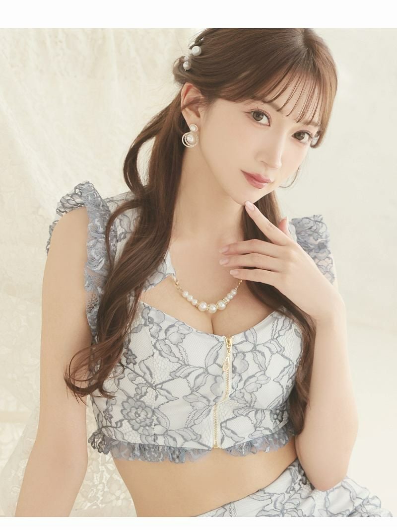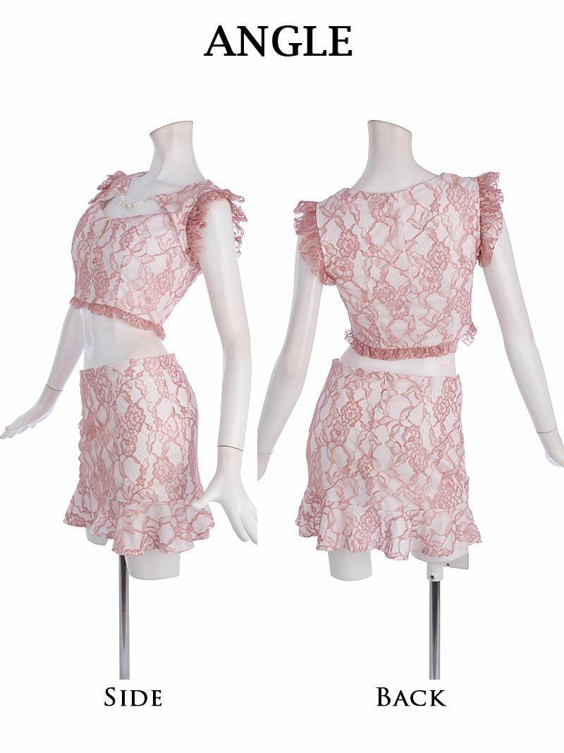 爽快美レースの上級セトアで高見せ! 総レースフリルDOLLセットアップミニドレス キャバクラドレス【Belsia】(XS/S/M/L)(ピンク/ブルー)