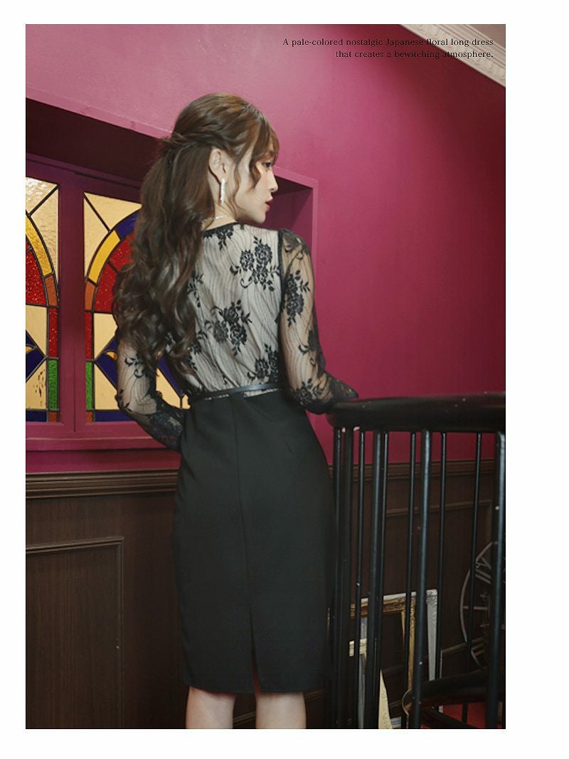 上品に色気を魅せる大人のヌーディードレス 先行予約割¥7390→¥7021!※一部予約販売※ヌーディーレース長袖キャバドレス れいぽよ 着用 ミニドレス【Ryuyu】(S/M/L/XL(2L))(ブラック)?ptpl
