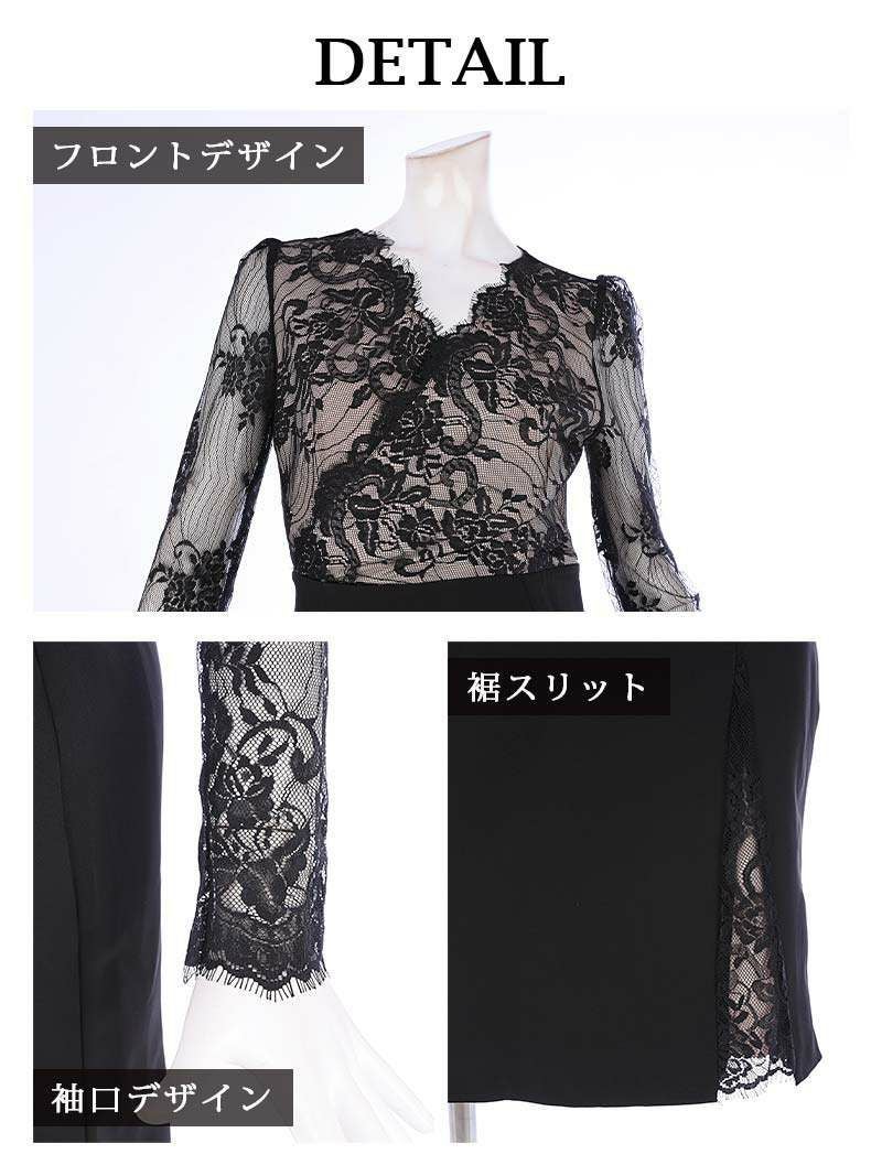 3. 先行予約割¥7390→¥7021!※一部予約販売※ヌーディーレース長袖キャバドレス れいぽよ 着用 ミニドレス【Ryuyu】(S/M/L/XL(2L))(ブラック)?ptpl