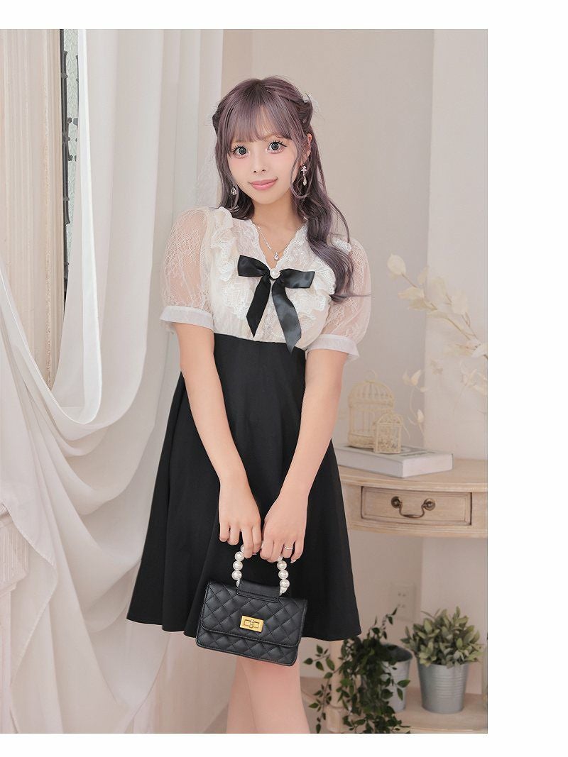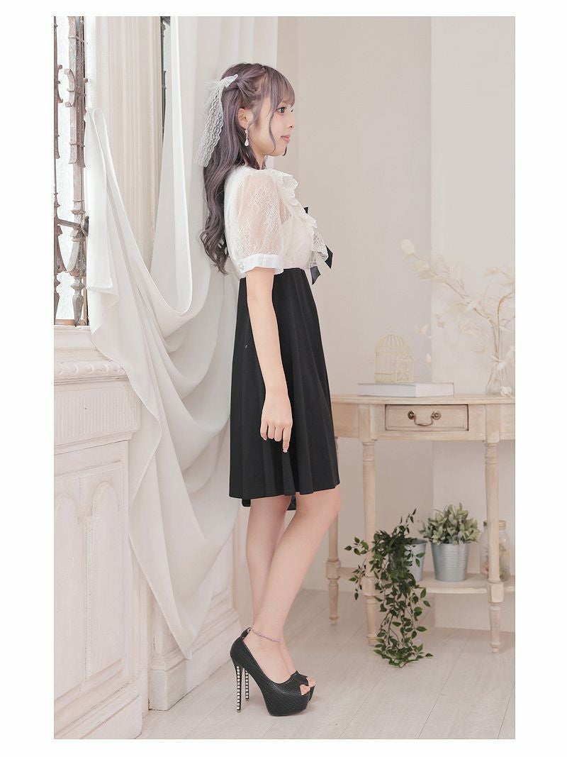 お上品な可愛さがモテ確実! ドーリーレース韓国風フレアキャバドレス あいさ 着用 ミニドレス【RyuyuChick】(M)(ブラック)