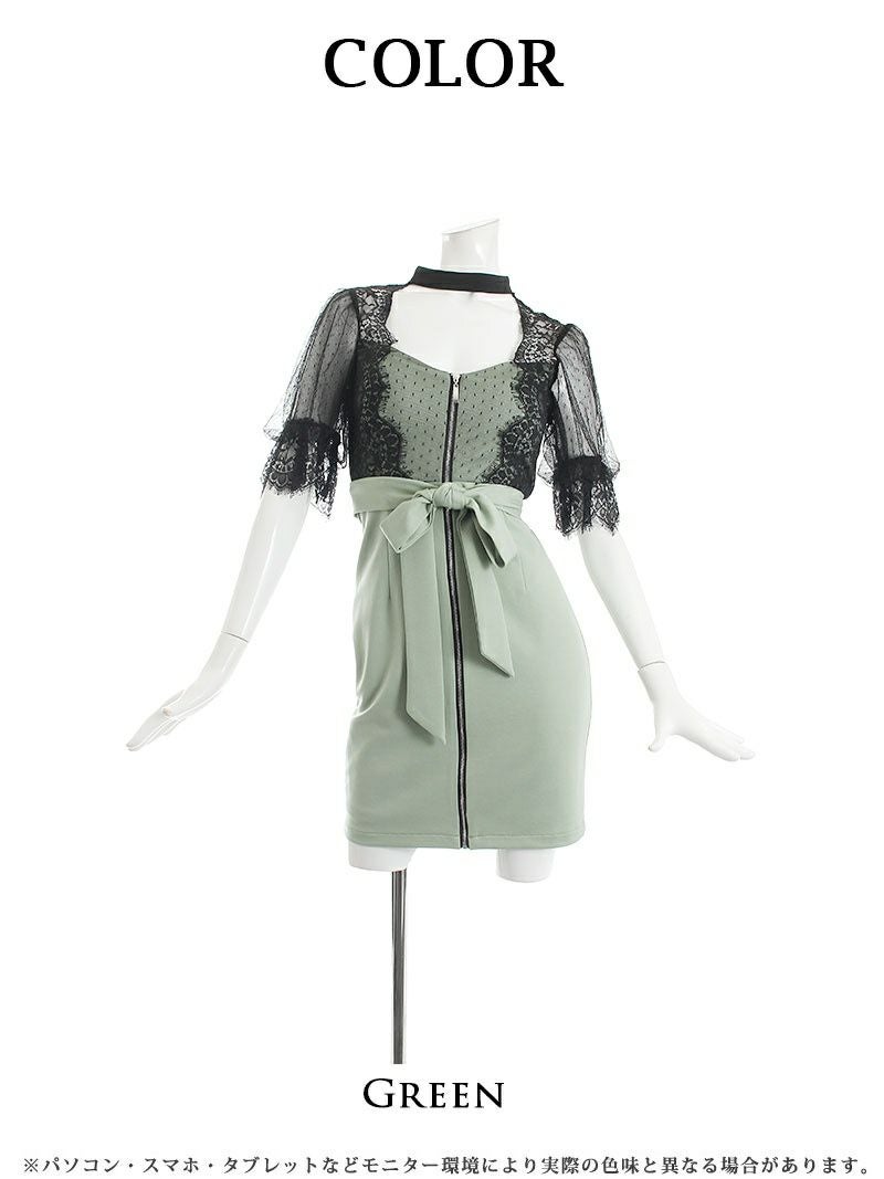 訳ありキャバカワドレス 【訳ありアウトレット】パフ袖付きキャバクラシアーミニドレス【Ryuyu】(S/M/L/XL)(グリーン) ptpl