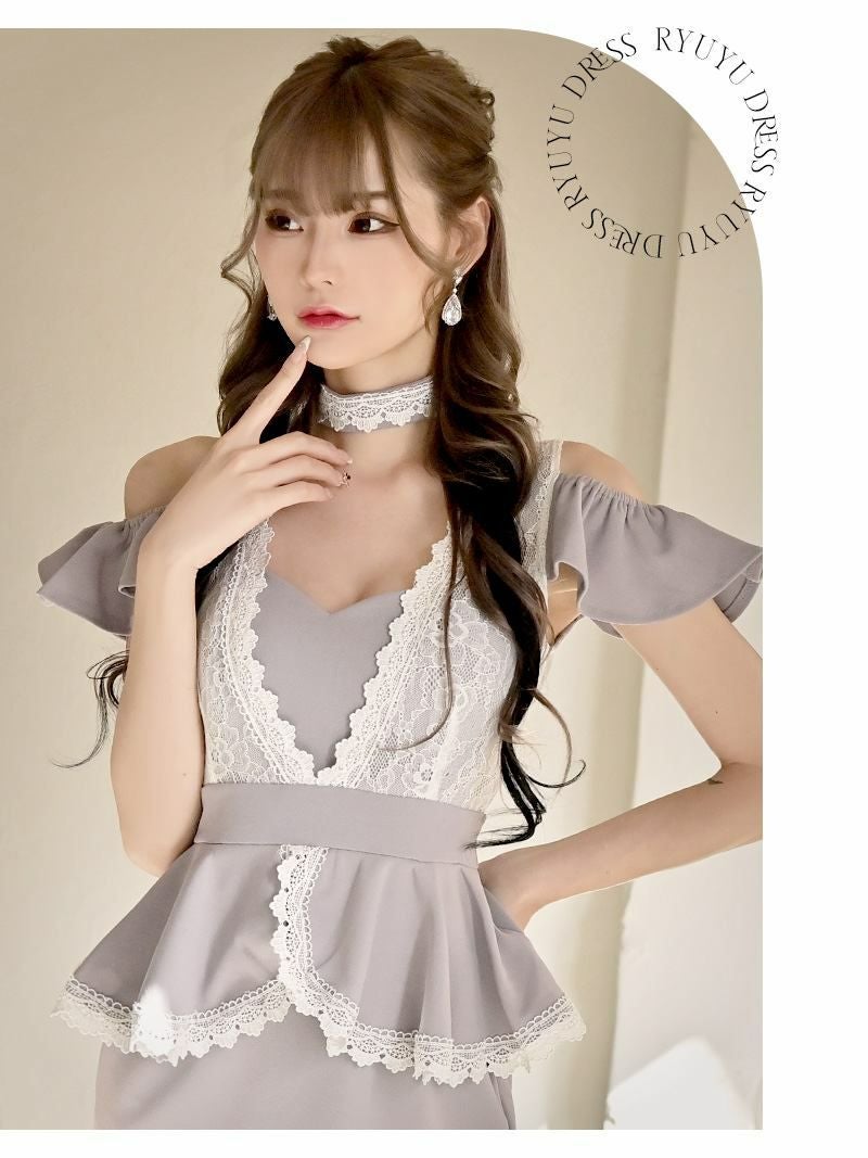 【訳ありアウトレット】肩魅せレースペプラムタイトキャバミニドレス【Ryuyu】
