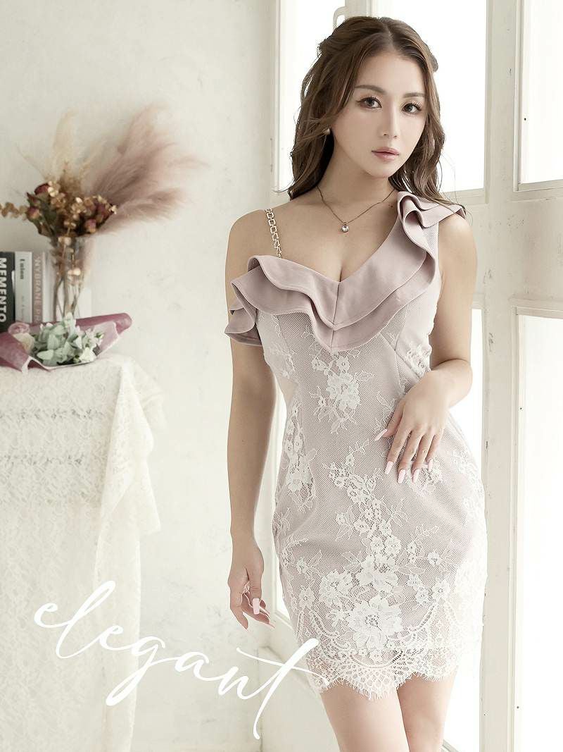 【訳ありアウトレット】アシンメトリー可愛いフリルレースタイトミニキャバドレス【Ryuyu】