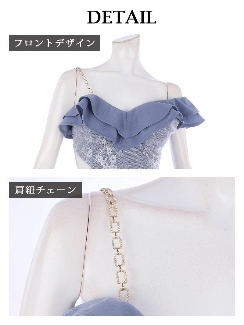 4. 【訳ありアウトレット】アシンメトリー可愛いフリルレースタイトミニキャバドレス【Ryuyu】(S/M/L)(ピンク/ブルー) ptpl