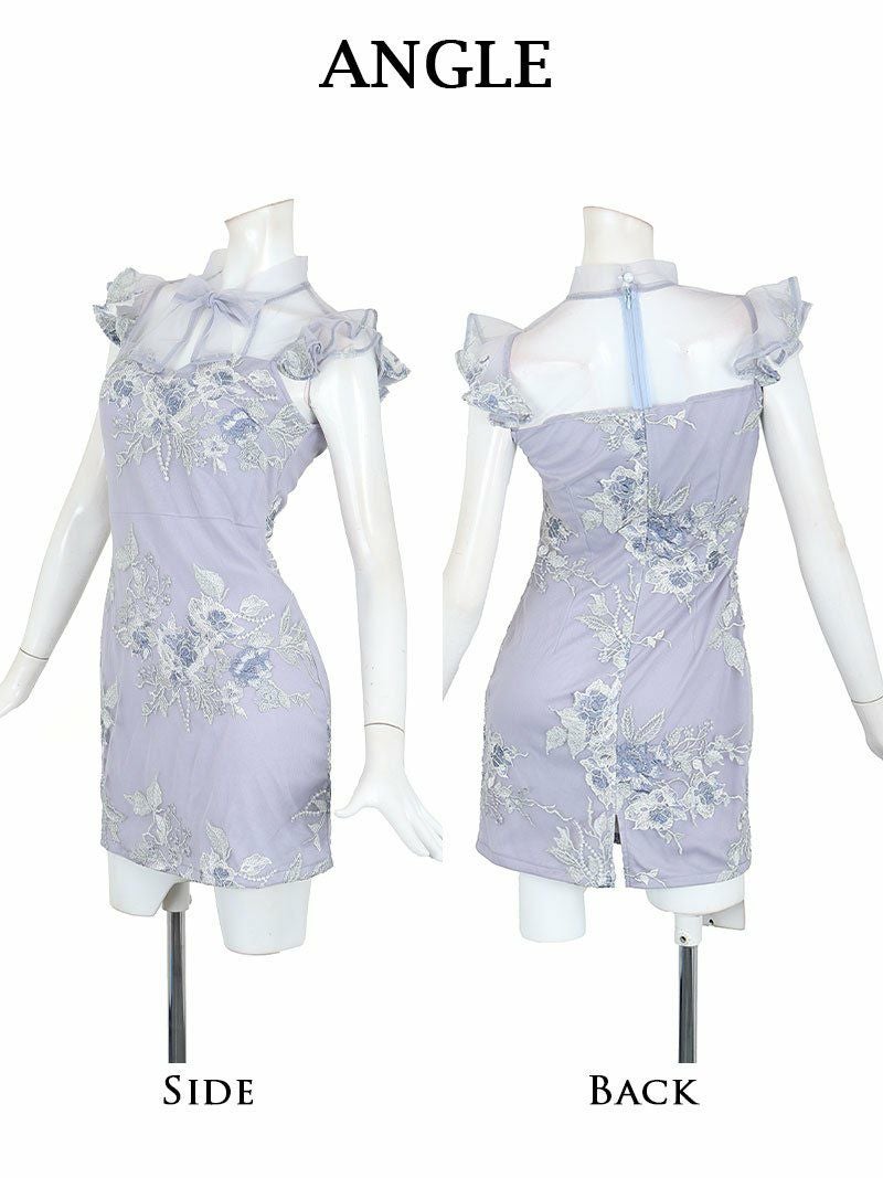 4. 【訳ありアウトレット】花柄刺繍レース袖付キャバクラミニドレス【Ryuyu】(S/M/L)(ピンク/ブルー) ptpl
