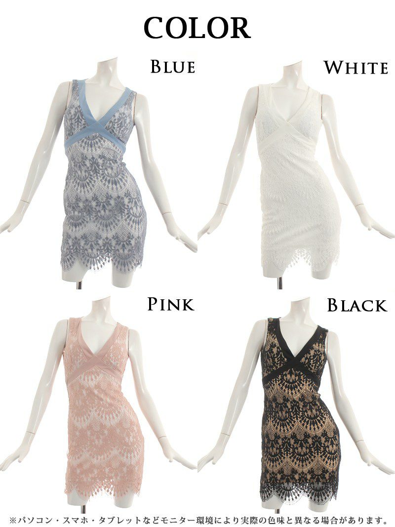 4. 【訳ありアウトレット】セクシー背中あき花レースタイトキャバミニドレス【RyuyuChick】(S/M/L)(ブラック/ホワイト/ブルー/ピンク)