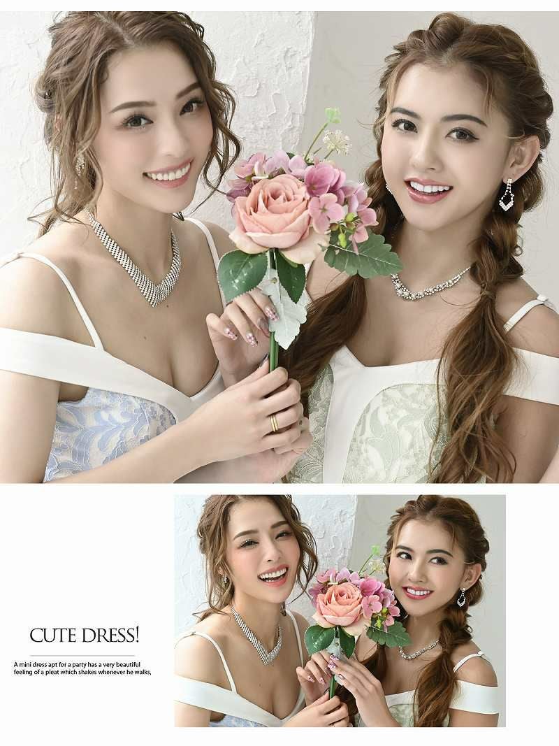 訳あり花柄レース 【訳ありアウトレット】オフショルダータイトキャバミニドレス【RyuyuChick】(S/M/L)(ブルー/グリーン/ブラック)