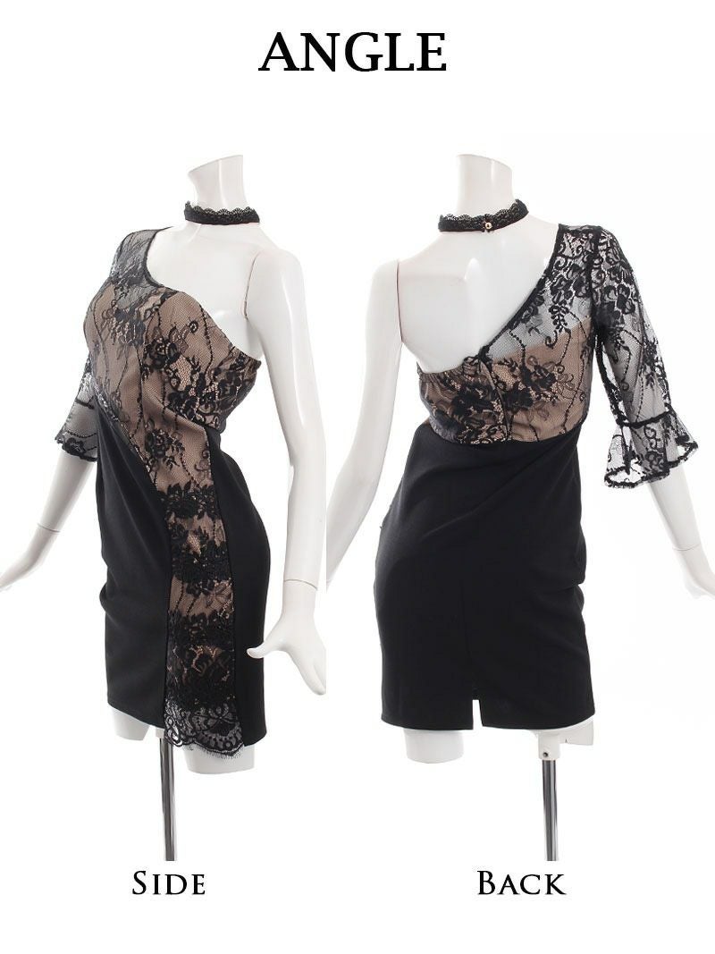 4. 【訳ありアウトレット】ワンショルダー肩魅せsexyキャバミニドレス【Ryuyu】(S/M/L)(ブラック) ptpl