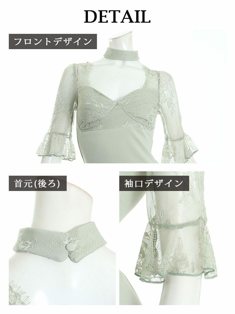 5. 【訳ありアウトレット】袖付レース大人タイトキャバミニドレス【Ryuyu】(S/M/L)(グリーン/ホワイト) ptpl