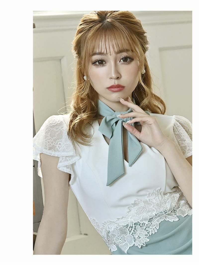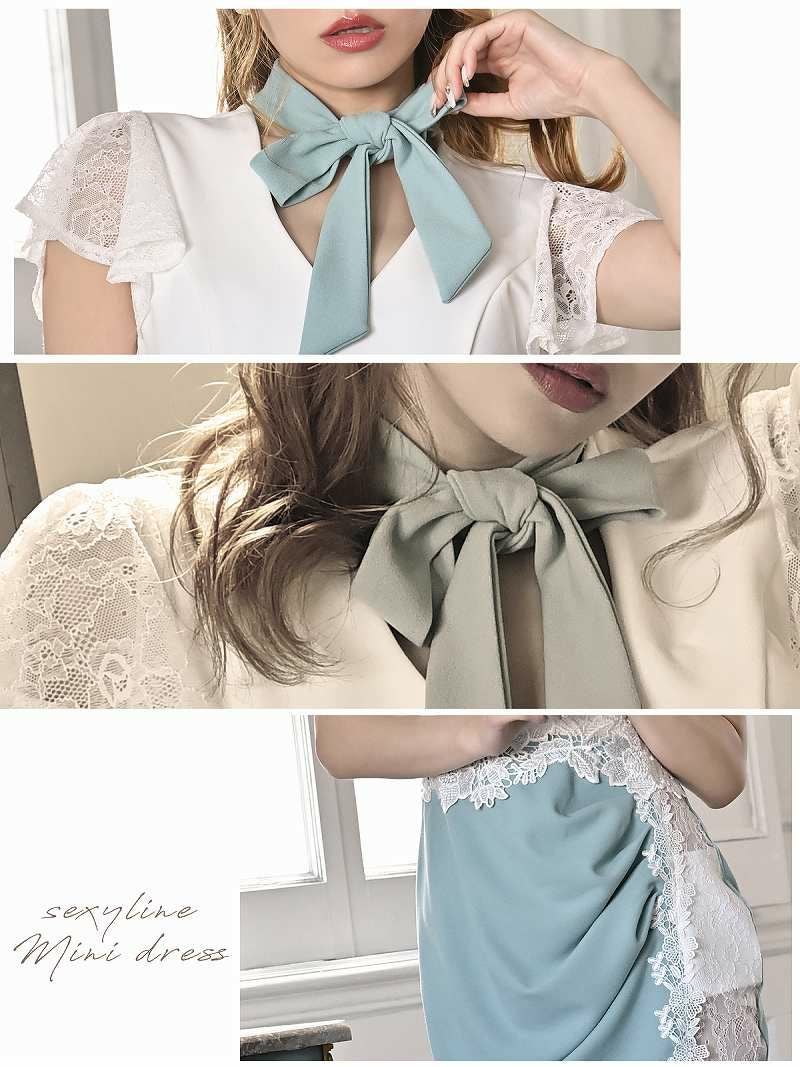 6. 【訳ありアウトレット】レース袖付シアーえちタイトキャバミニドレス【Ryuyu】(S/M/L)(ミント/ピンク/グレー) ptpl