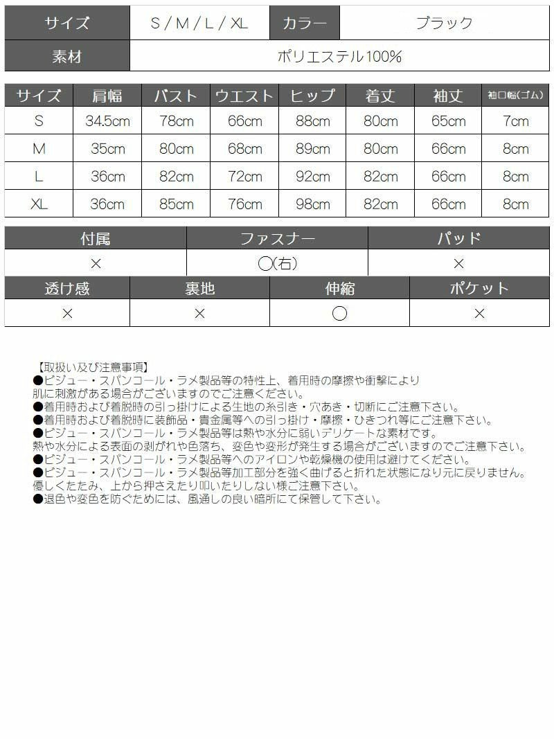 訳ありセクシー袖 【訳ありアウトレット】透けレースの長袖キャバミニドレス【RyuyuChick】(S/M/L/XL)(ブラック)