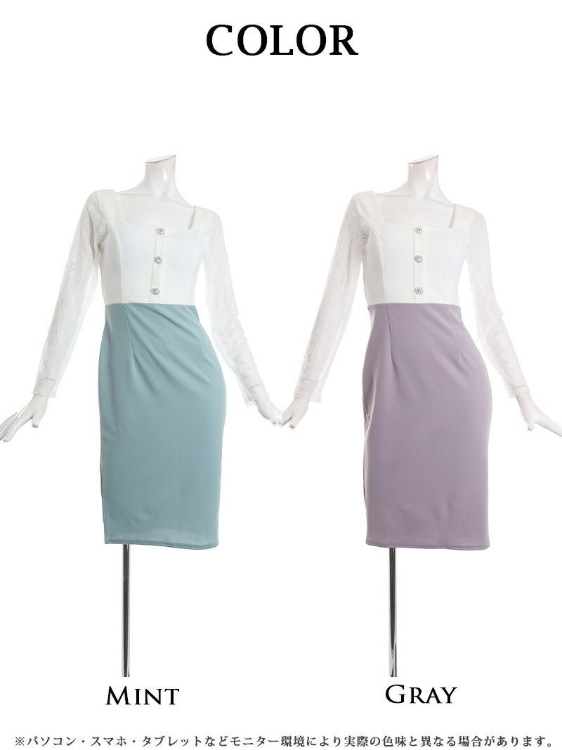 6. 【訳ありアウトレット】長袖レース大人タイト韓国キャバワンピース【DAYS PIECE】(S/M/L/XL)(ミント/グレー) ptpl