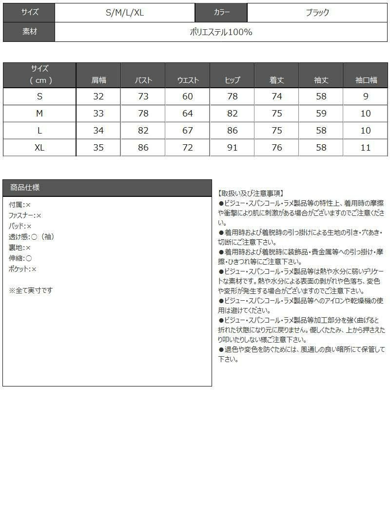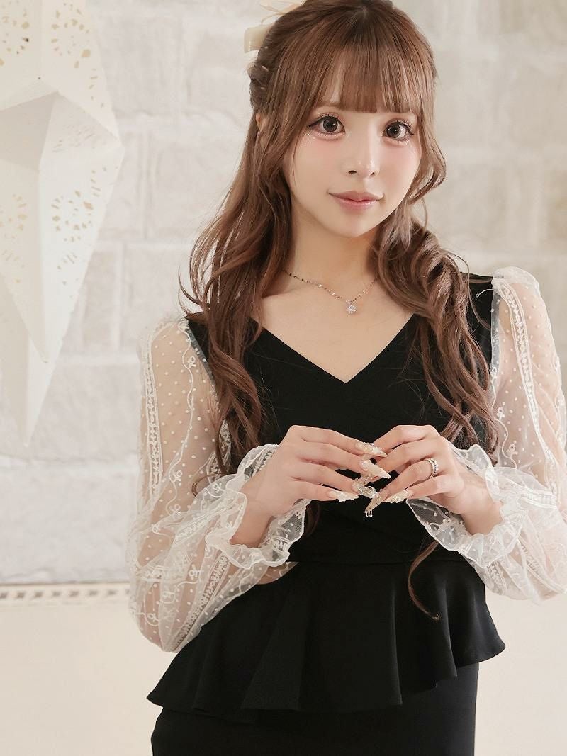 総レースのシアー袖が長袖でも重くならず、上品な透け感で大人の色気を演出します。