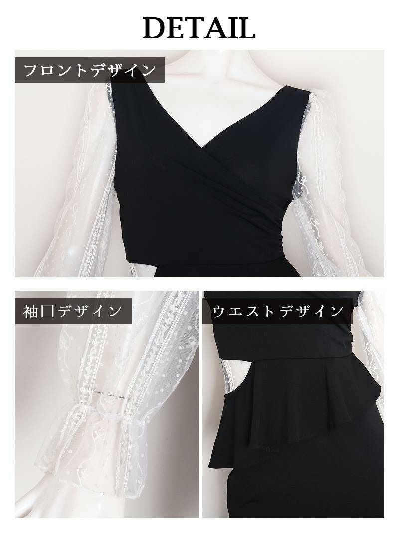 5. エレガントな総レース袖!サイドカットアウトが色っぽいタイトミニドレス あいさ 着用 キャバドレス【RyuyuChick】(S/M/L/XL(2L))(ブラック)