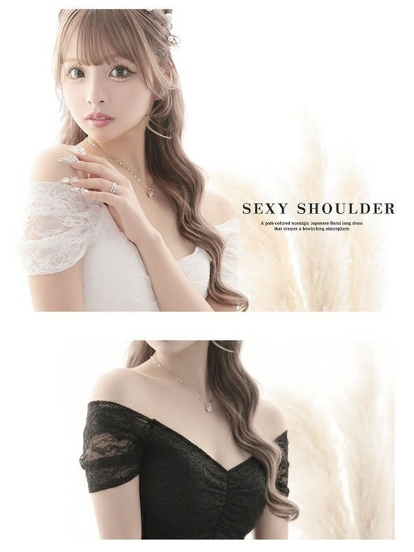 美谷間メイクレースオフショルタイトドレス あいさ 着用 キャバドレス【RyuyuChick】