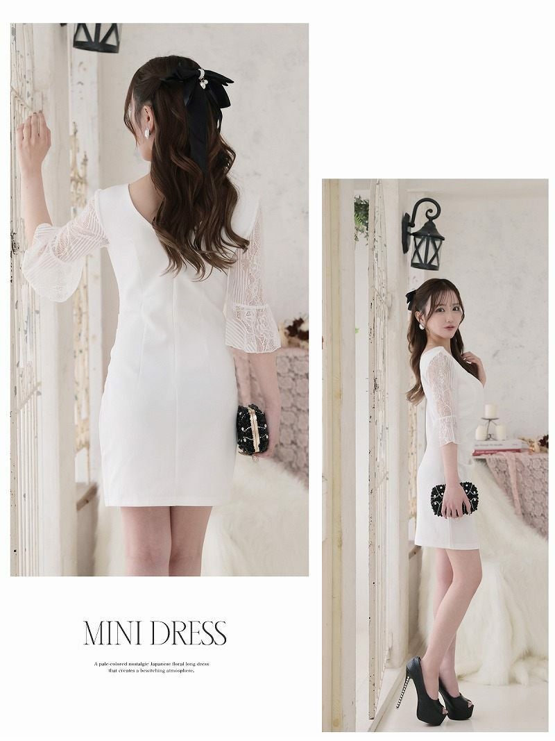 7. 先行予約割¥4280→¥4065!※一部予約販売※シアーレース袖カシュクール谷間魅せタイトミニドレス りせり 着用 キャバドレス【RyuyuChick】(S/M/L/XL(2L)/XXL(3L))(ブラック/ホワイト)