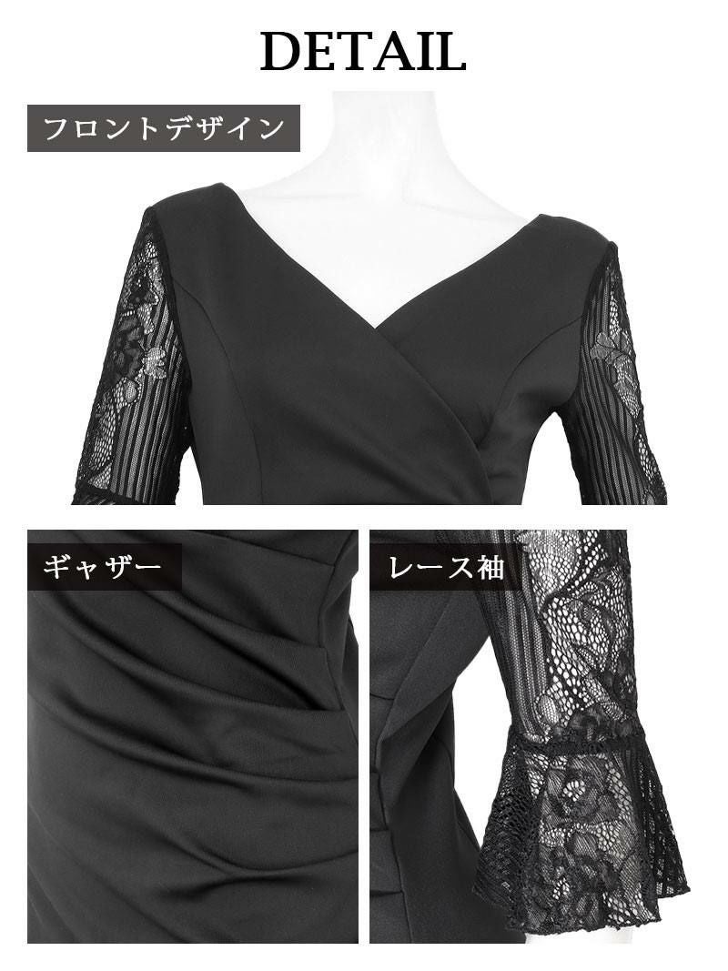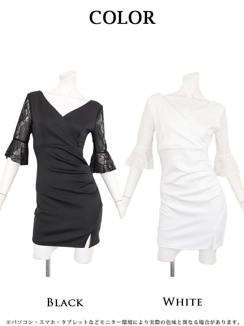 4. 先行予約割¥4280→¥4065!※一部予約販売※シアーレース袖カシュクール谷間魅せタイトミニドレス りせり 着用 キャバドレス【RyuyuChick】(S/M/L/XL(2L)/XXL(3L))(ブラック/ホワイト)