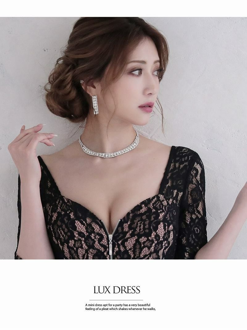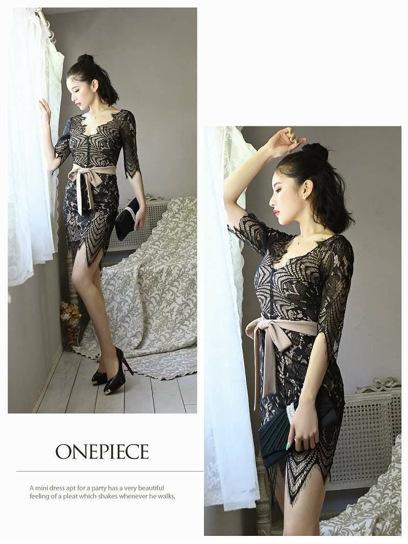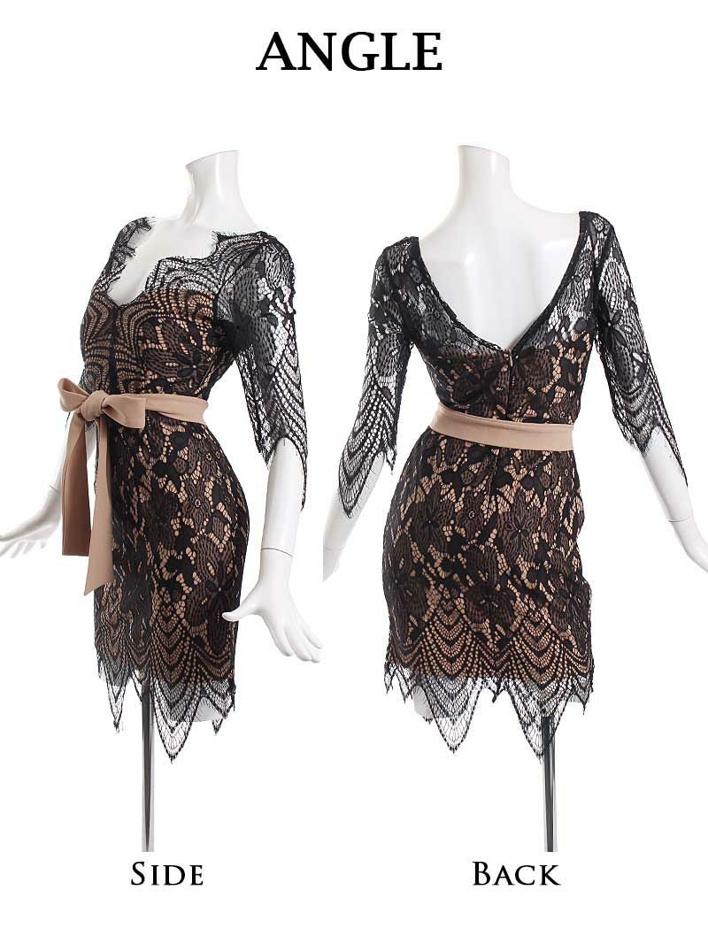 袖つきブラックレースランジェリーキャバドレス れいぽよ 着用 ミニドレス【Ryuyu】(S/M/L)(ブラック)