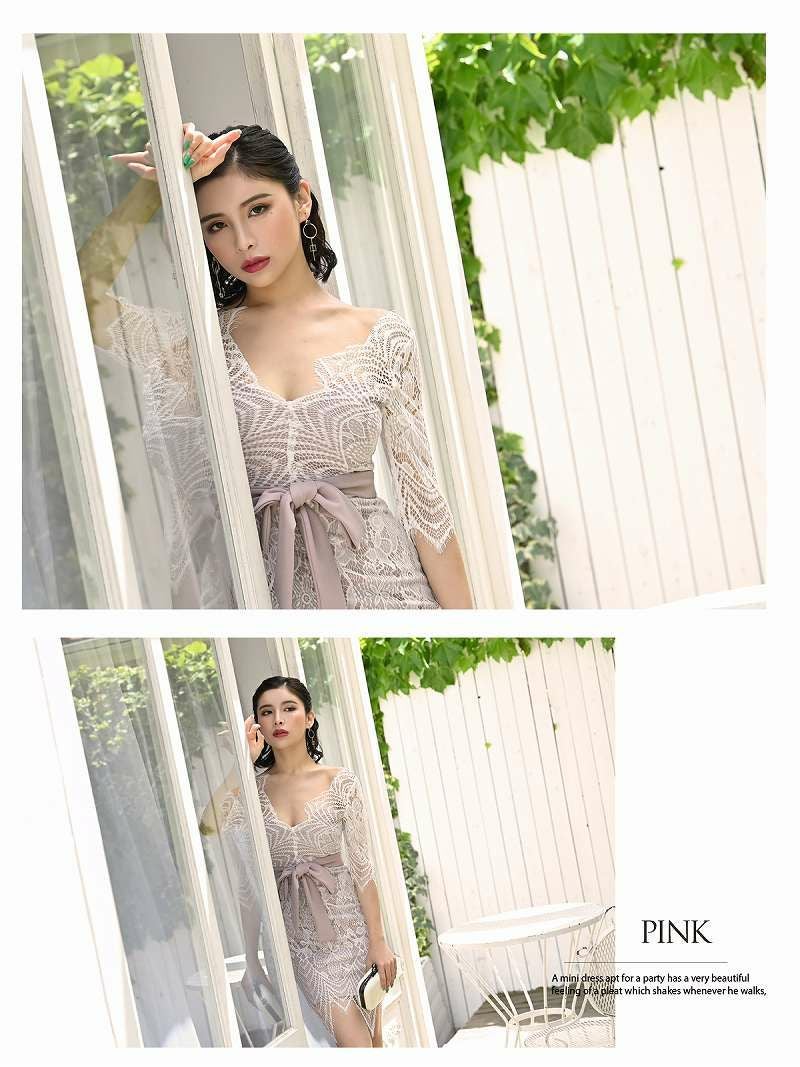 フリルデザイン総レースタイトキャバドレス【Belsia】(S/M/L)(ピンク/ブルー)
