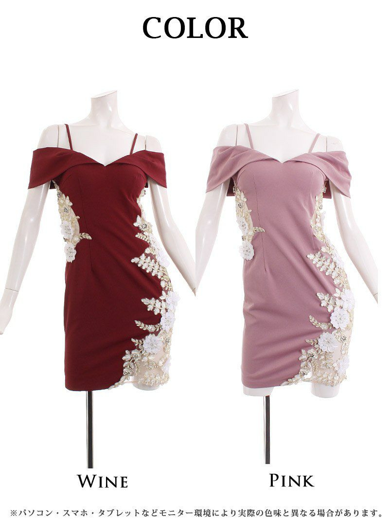 5. ワンカラー豪華刺繍サイドシアーミニドレス 武田静加 着用キャバクラドレス【Belsia】(S/M/L)(ワイン/ピンク)