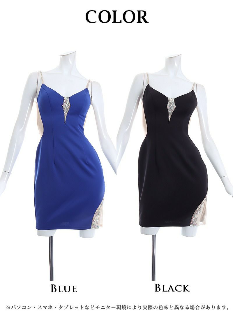 ビビッドカラーでクール美女! 【Angel R/エンジェルアール】360度美しい高級ビジュー付きタイトキャバドレス(S/M)(ブラック/ブルー)
