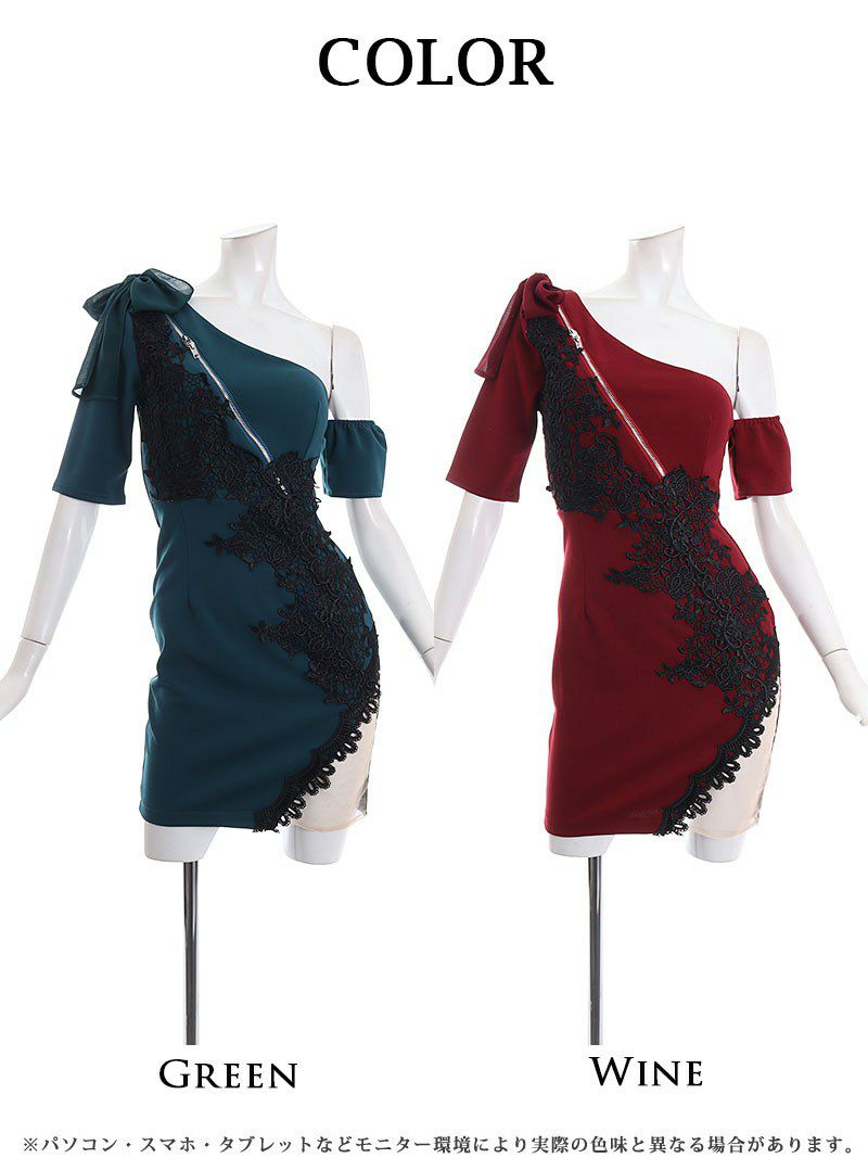 4. セクシー谷間ジップワンショルシアーミニドレス【Ryuyu】(S/M/L)(ワイン/グリーン) ptpl