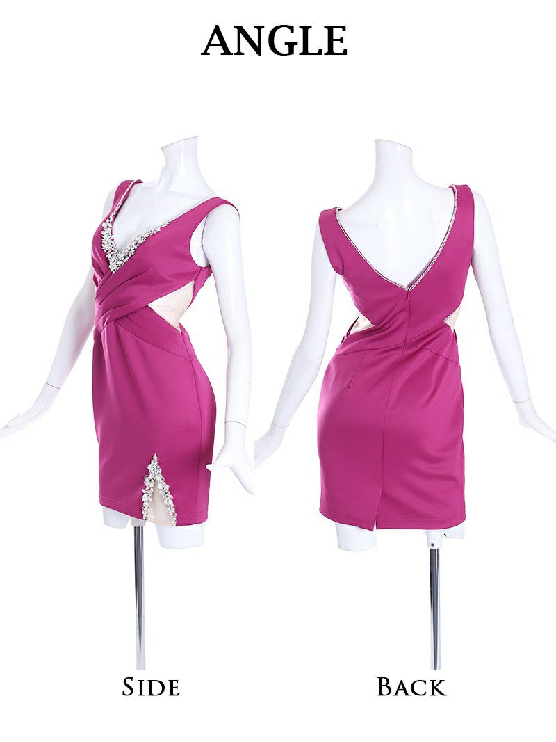 4. 【Angel R/エンジェルアール】バストビジュークロスタックキャバドレス(S/M)(ブラック/ローズピンク)
