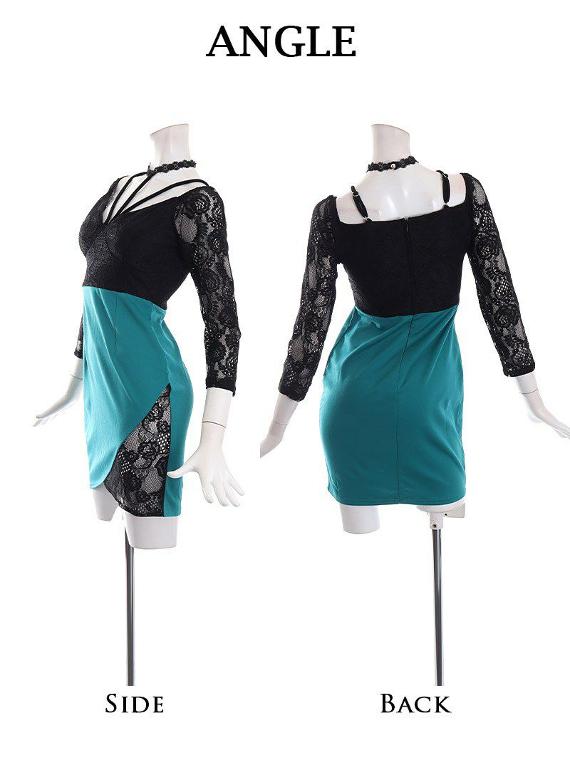 4. バイカラーブラックランジェリー風タイトキャバドレス 加賀美早紀 着用 ミニドレス【Belsia】(XS/S/M/L)(ベージュ/グリーン) ptpl