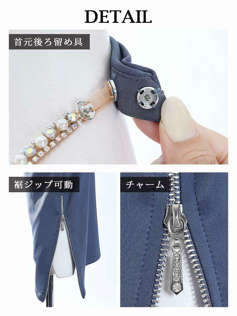 高級感あふれるビジュー装飾が華やかさを添え、ナイトシーンに映える洗練された一枚。