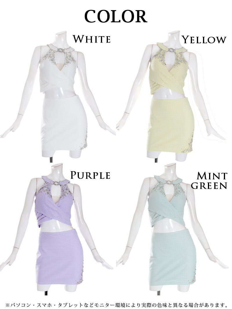 4. 【Angel R/エンジェルアール】バストビジュー谷間見せセパレートセットアップドレス(XS/S/M)(ホワイト/ミントグリーン/パープル/イエロー)