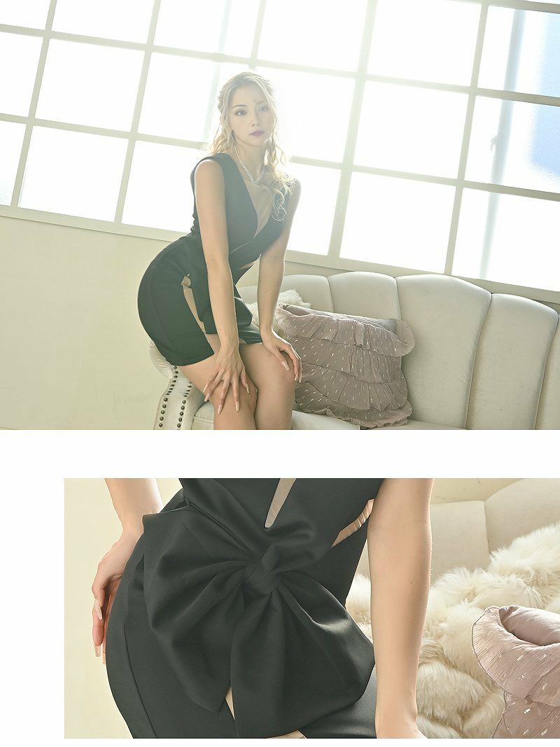 3. セクシーシアーデザインリボンモチーフミニ丈キャバドレス【Ryuyu】(S/M/L)(ブラック/ネイビー)