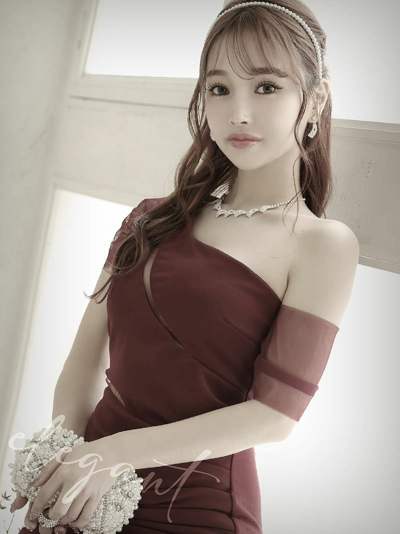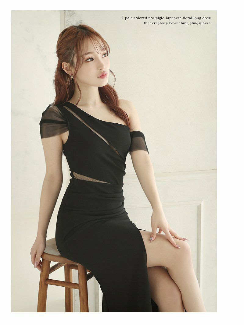 ワンショルダー肌見せ袖付きロングドレス SARA 着用 キャバドレス【Ryuyu】