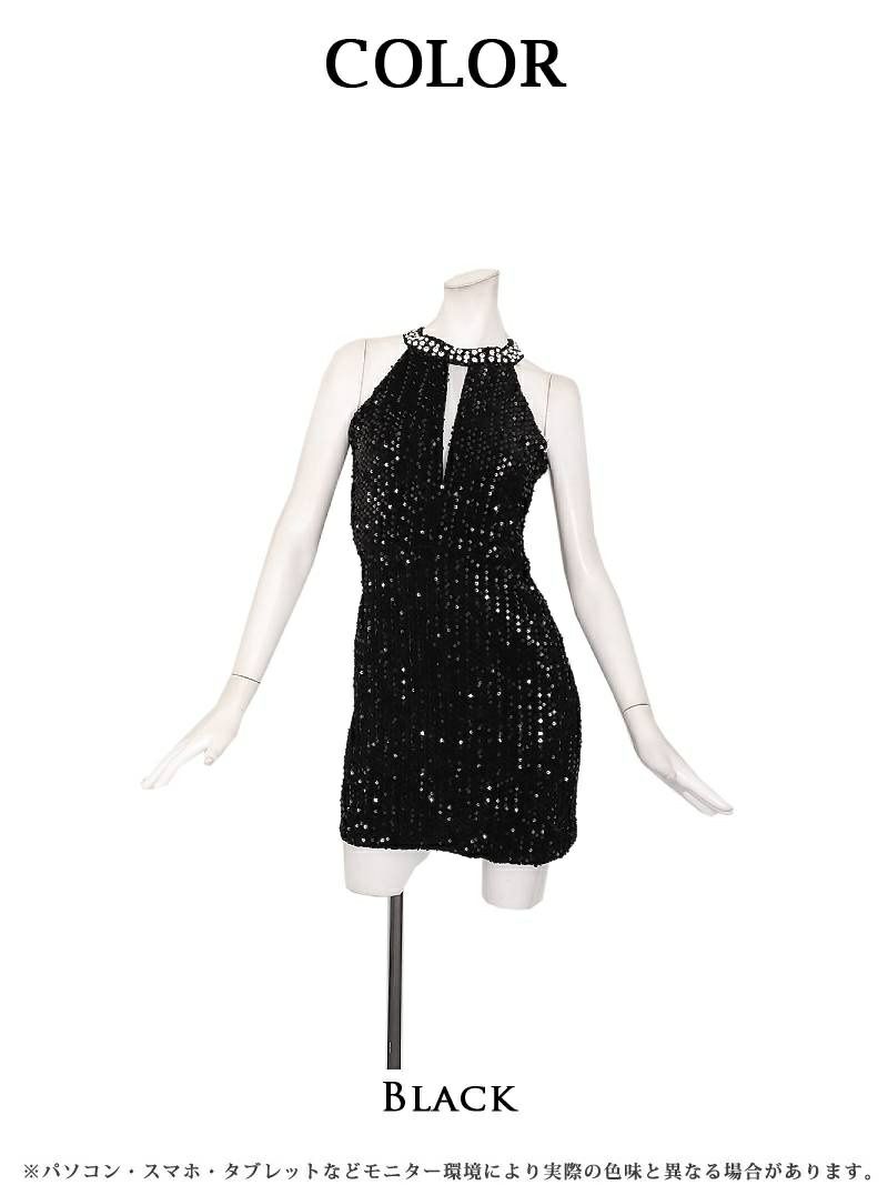 キラキラ輝くスパンコールと豪華なビジューが華やかなキャバドレスです。