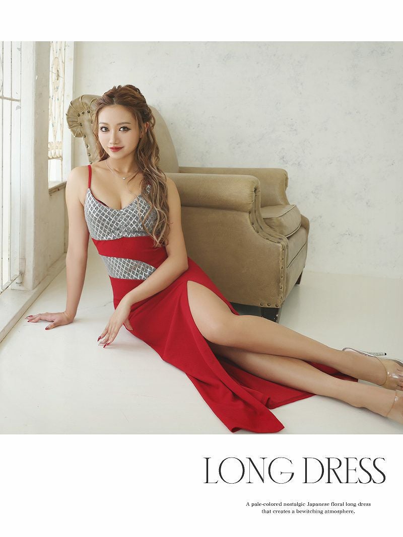 スパンコール深スリットタイトロングドレス りおん 着用キャバクラドレス【RyuyuChick】