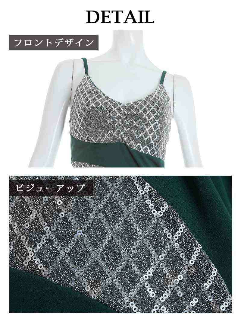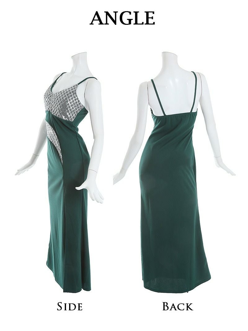 煌めくスパンコールが眩しいキャミドレスは、ロング丈ドレスで大人のセクシーさを演出。
