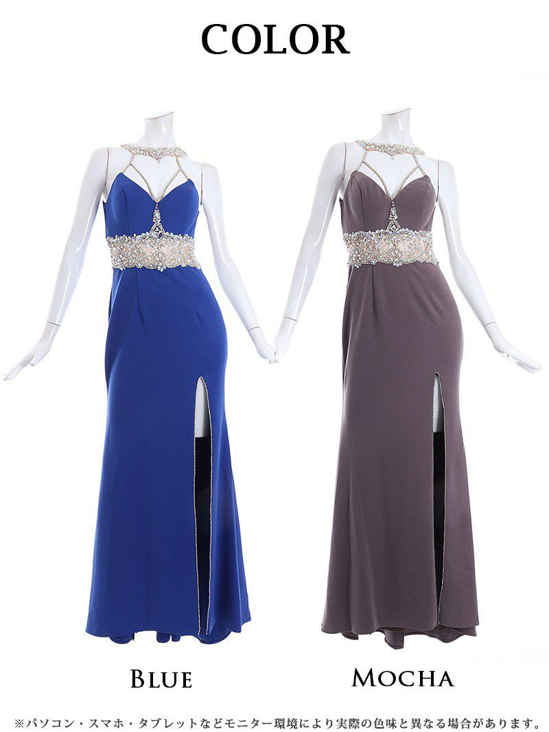 4. 【Angel R/エンジェルアール】ウエストパールビジューワンカラーロングドレス(S/M)(ブルー/モカ)