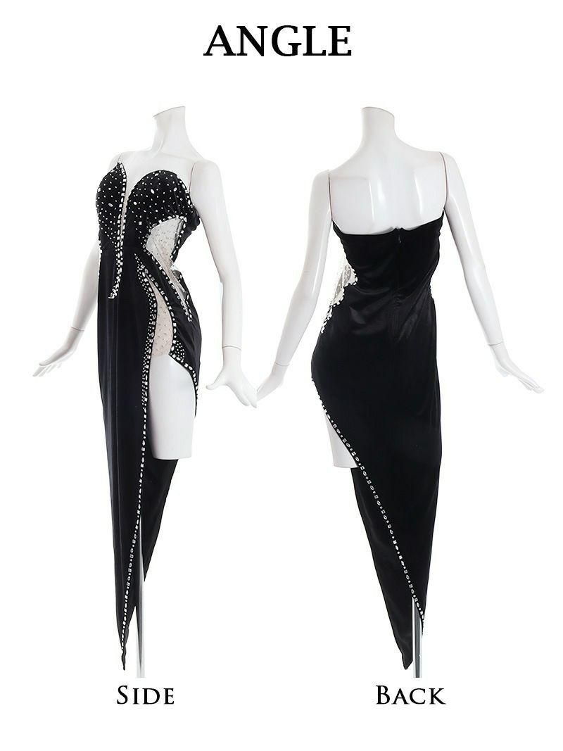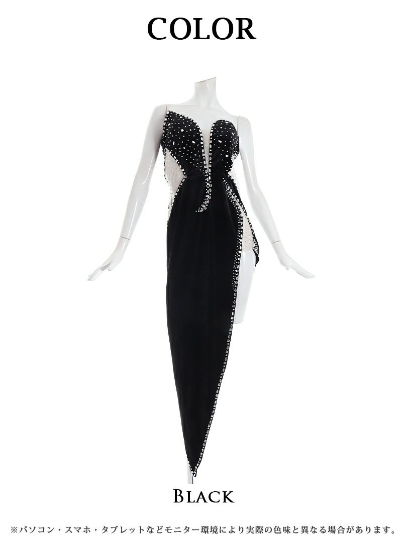 5. アシンメトリーシアーデザインブラックロングドレス【BelsiaLUX】(S/M/L)(ブラック)