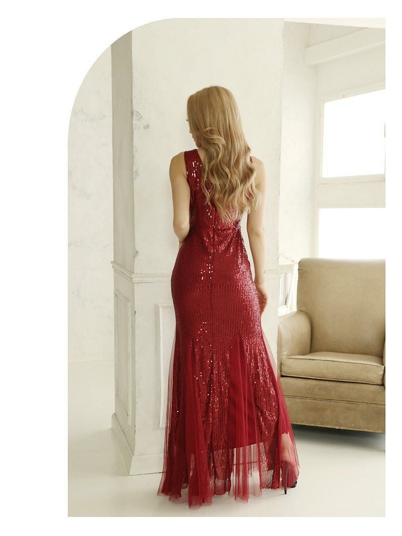 5. 煌きスパンコールチュールタイトロングドレス【Ryuyu】(M/L)(ワイン/ネイビー/ピンクゴールド) ptpl