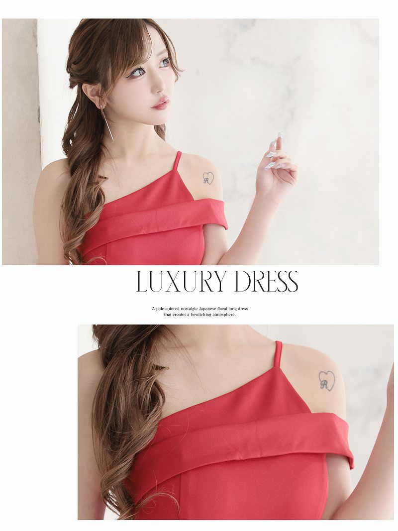 5. アシメントリーワンショルダータイトロングドレス honoka 着用キャバドレス【Ryuyu】(M/L)(レッド)