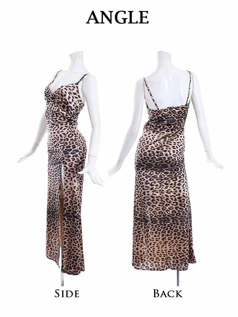 4. 【訳ありアウトレット】ガッツリスリット入りレオパード柄ロングドレス【RyuyuChick】(M/L)(ヒョウ柄)
