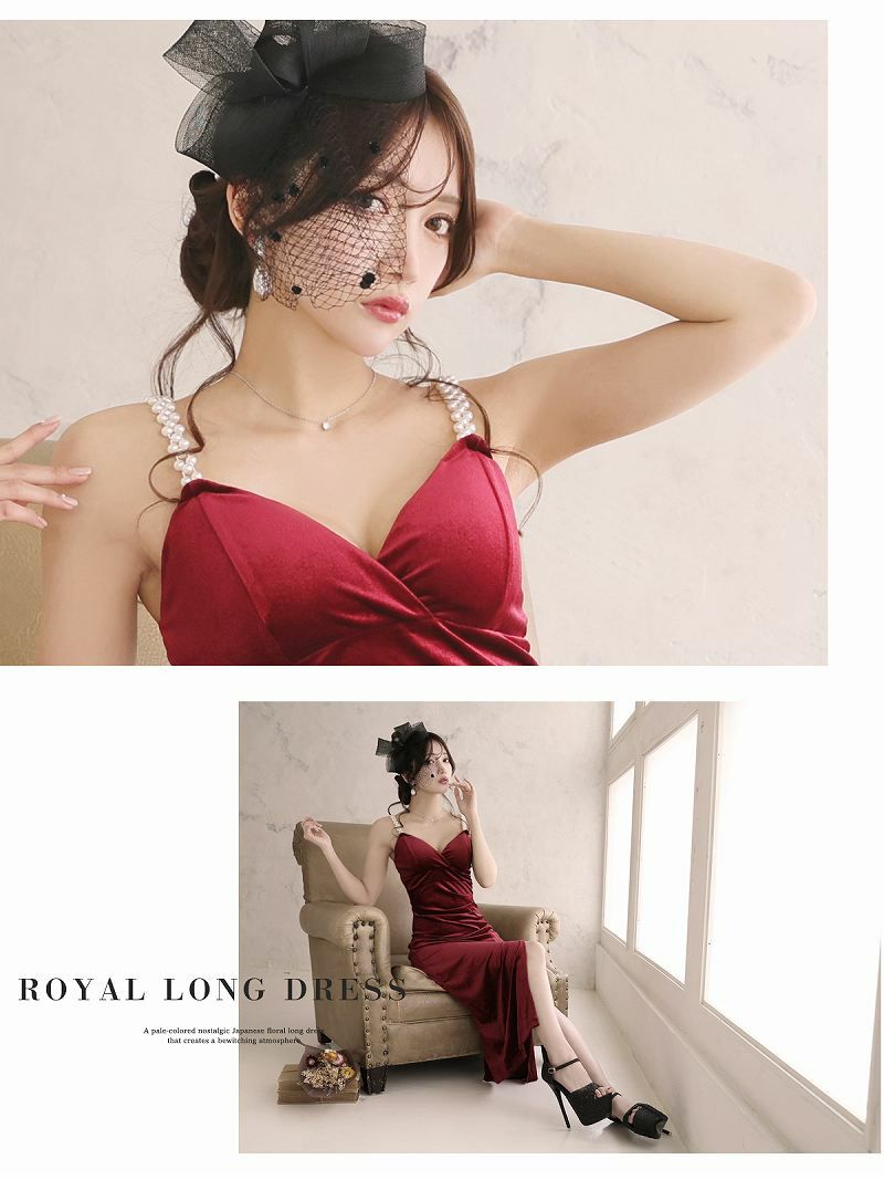 パールストラップスリット入りクリスマスロングドレス【Ryuyuchick】